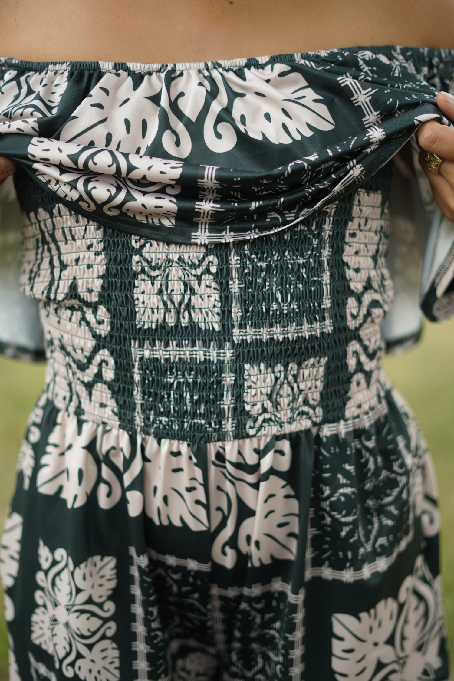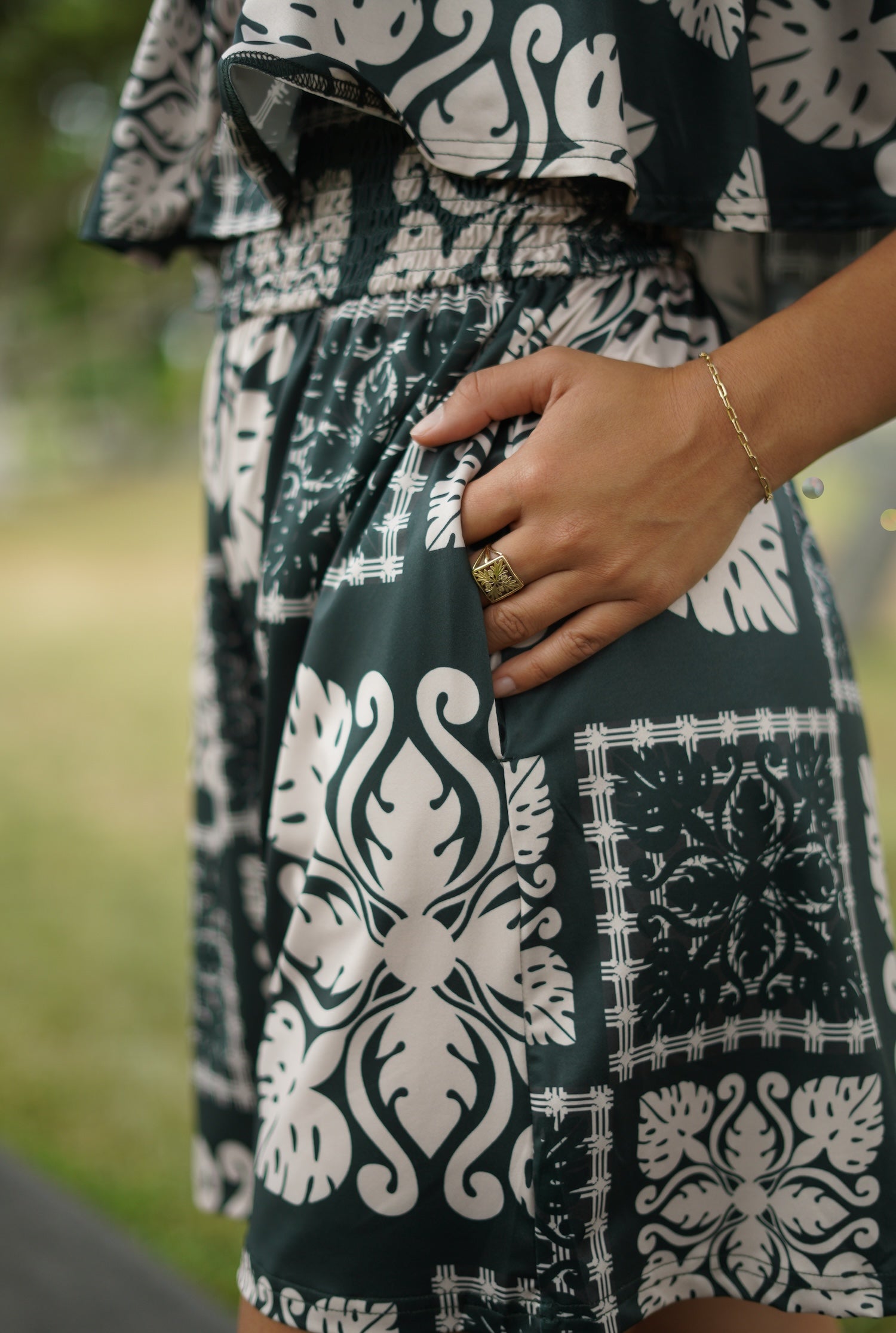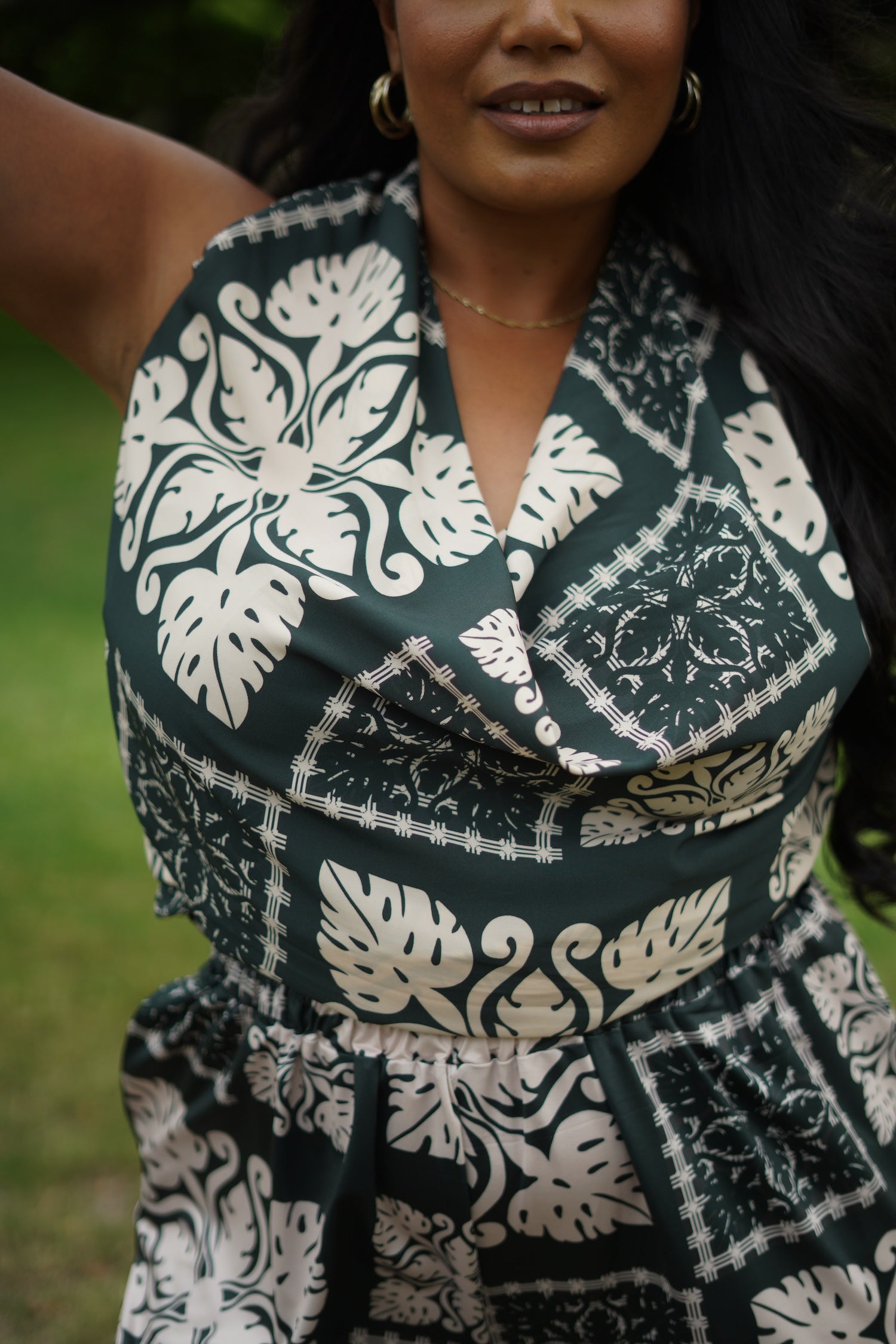 I absolutely 💯 love the emerald green print and the material is so soft and comfy. I paired it with the matching palazzo pant, and it looks so pea! I sized up 1 on the bodysuit for extra comfort! Looks great with jeans, pencil skirt, slacks or shorts!