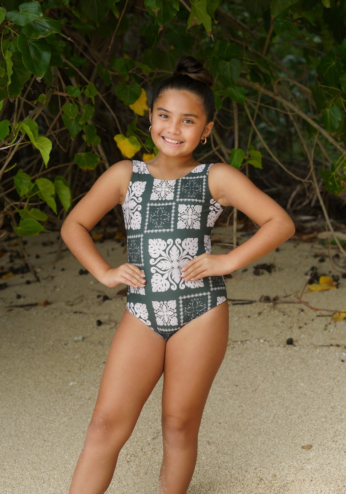 The Azayla Keiki Monokini is part of our Ohana Matching Swim collection- now available in the new Country Quilt Emerald print!