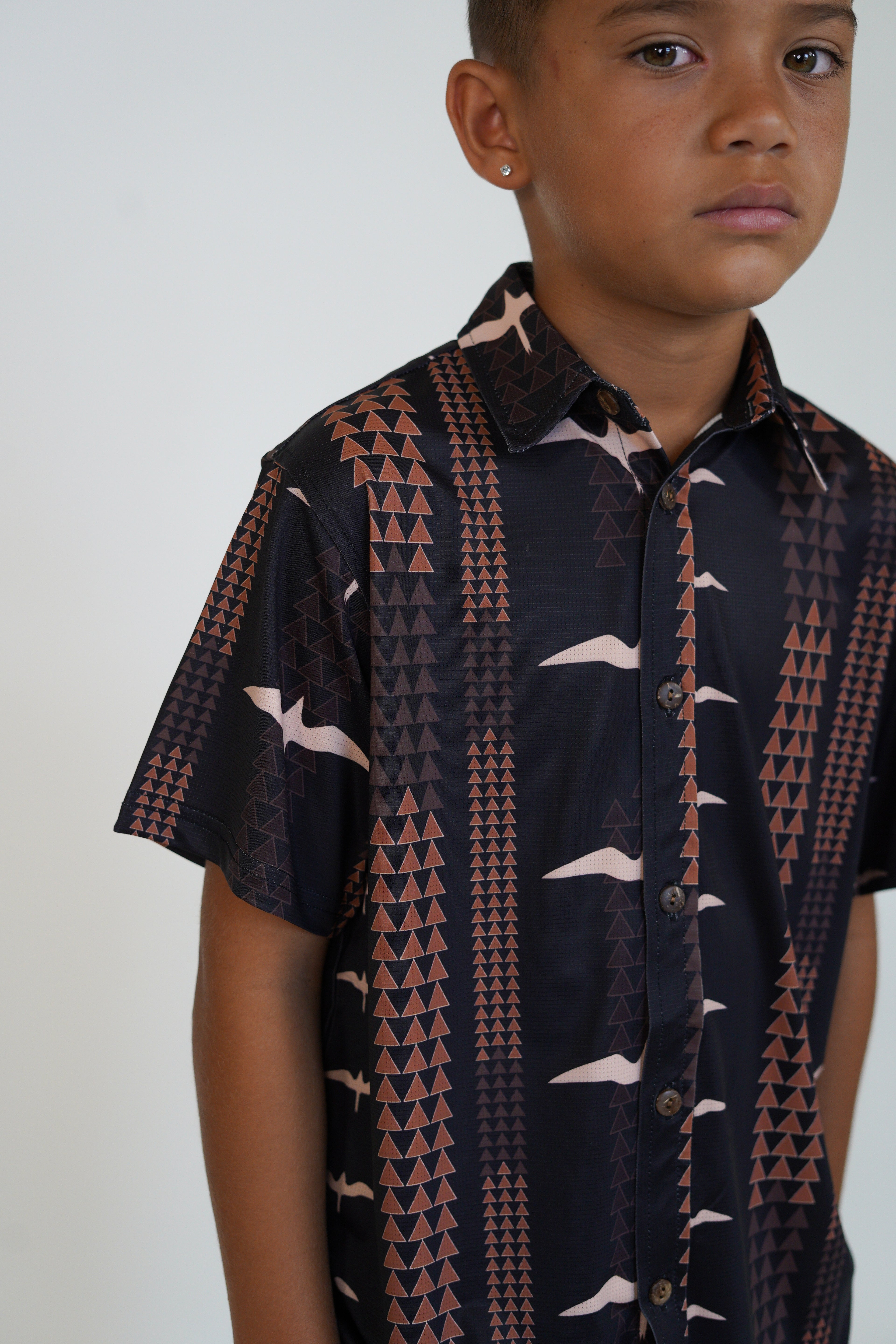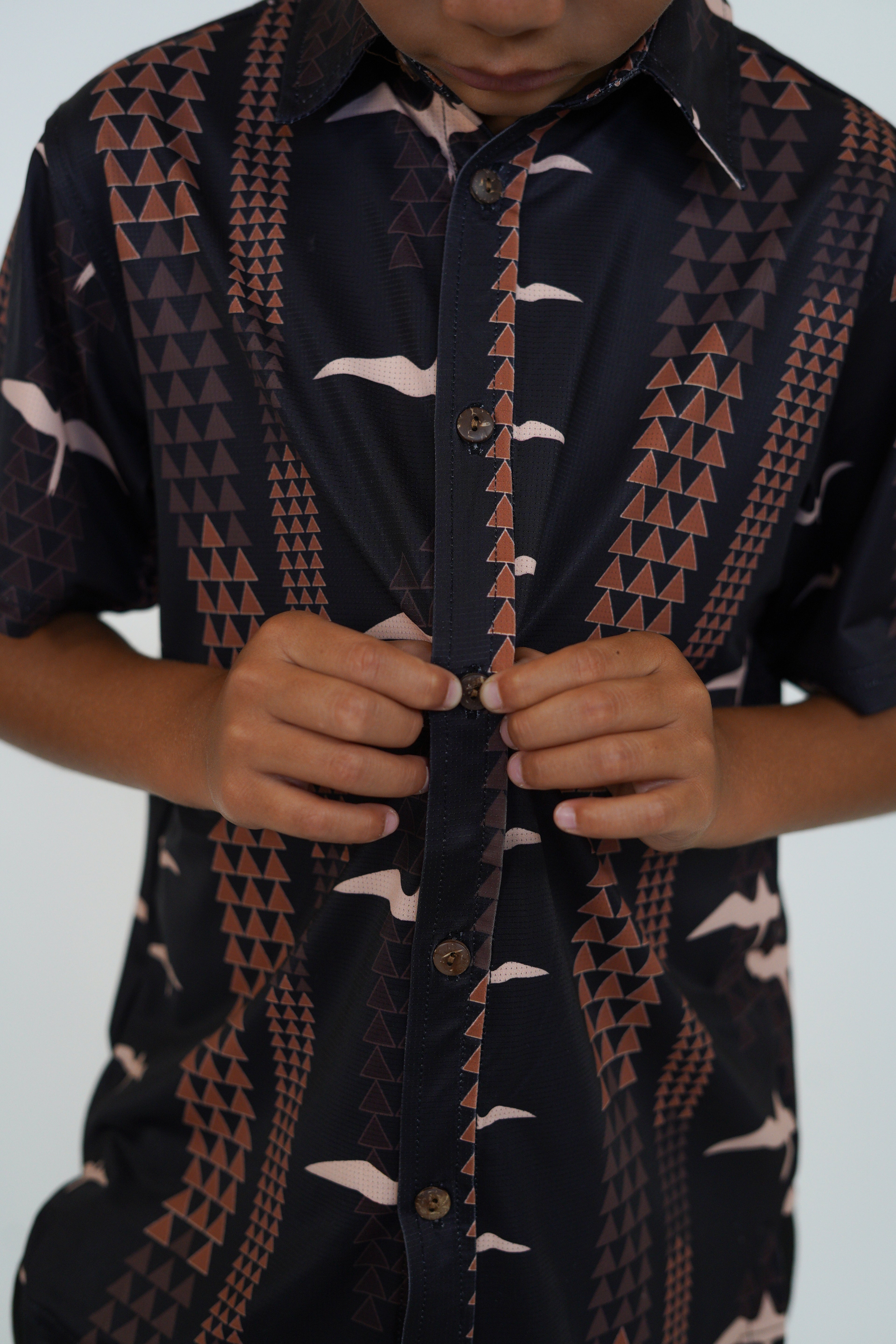 The Makani Keiki Aloha Shirt is part of our Ohana Matching Apparel Collection in Lōkahi Black!