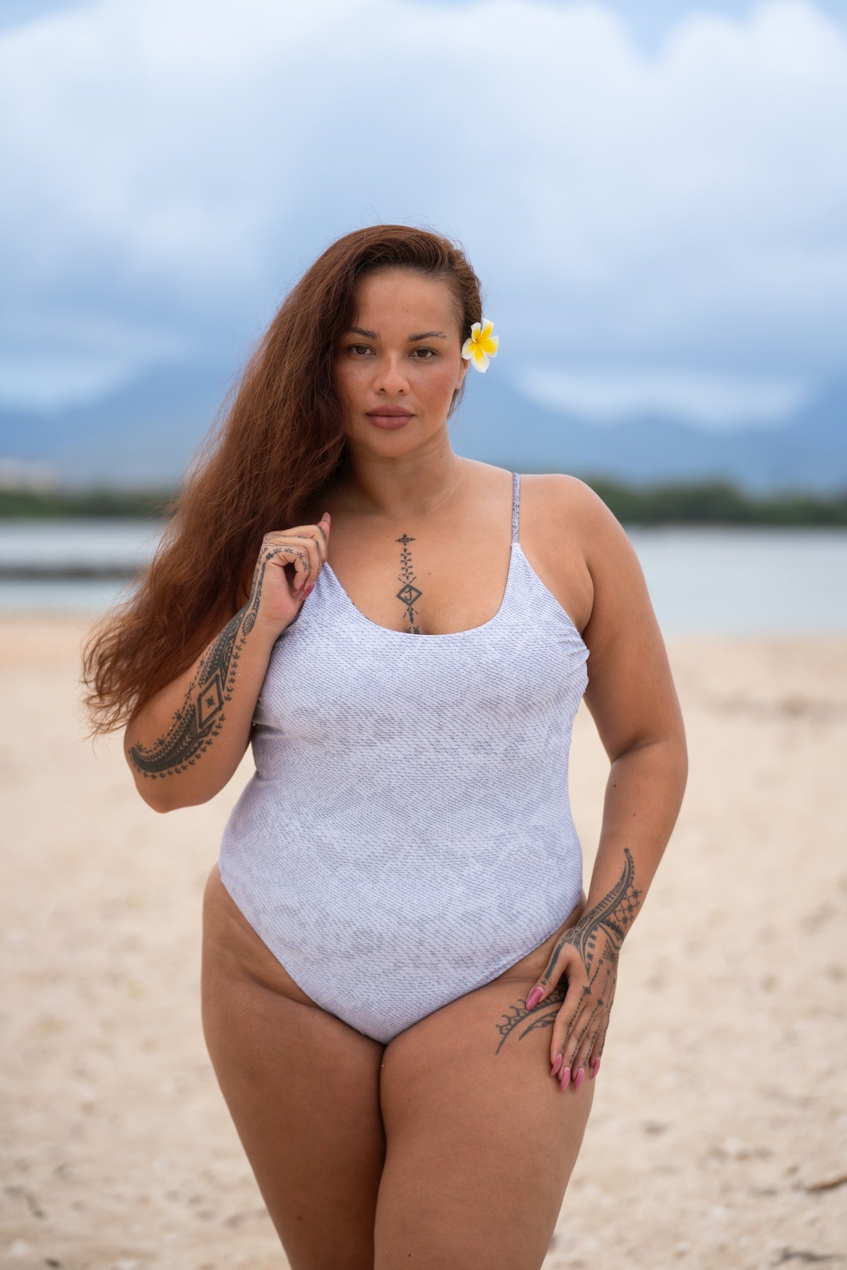 Looking for a reversible one piece with just the perfect amount of sexy? Look no further! The laced up detail on this bikini is subtle and can be adjusted to your preference of coverage. Now available in the following 5 prints: Alligator, Puakenikeni Pikake Black/Nude, Snake Skin/Cheetah, Hebrew Shell Black/Jade, and Ulu Army Black/White!