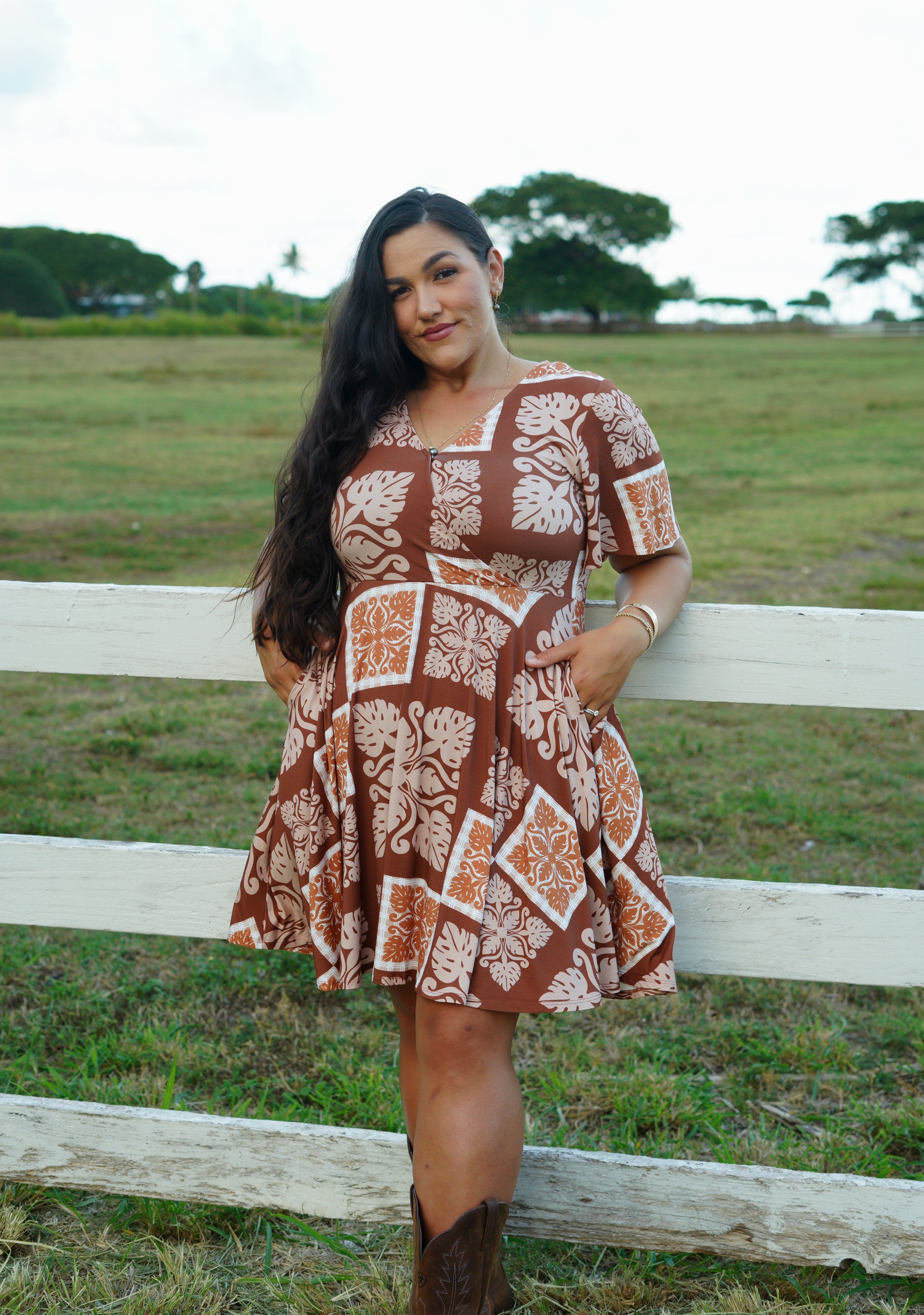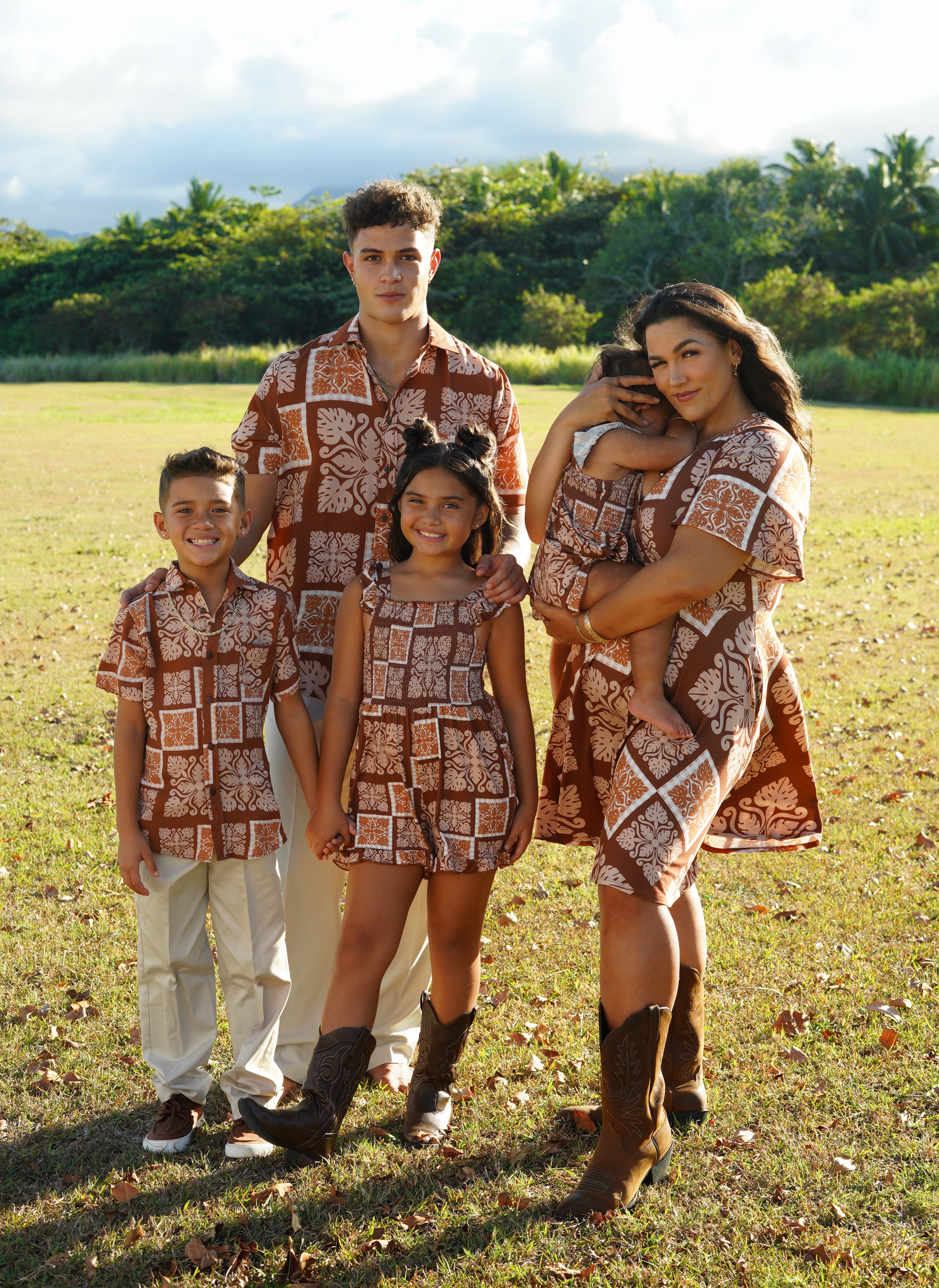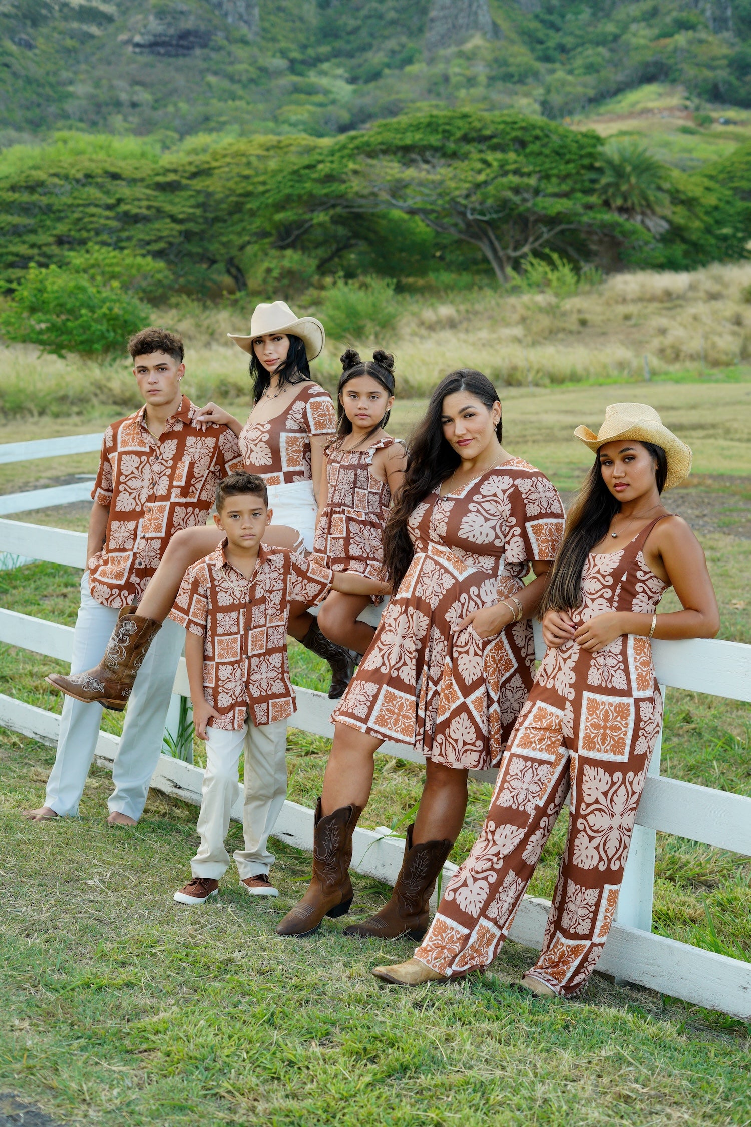 The Naomi Dress is part of our Ohana Matching Apparel collection in Country Quilt Rust!