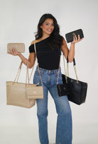 The Kanani Cross Body Bag is a new closet staple! Available in Onyx or Sand.