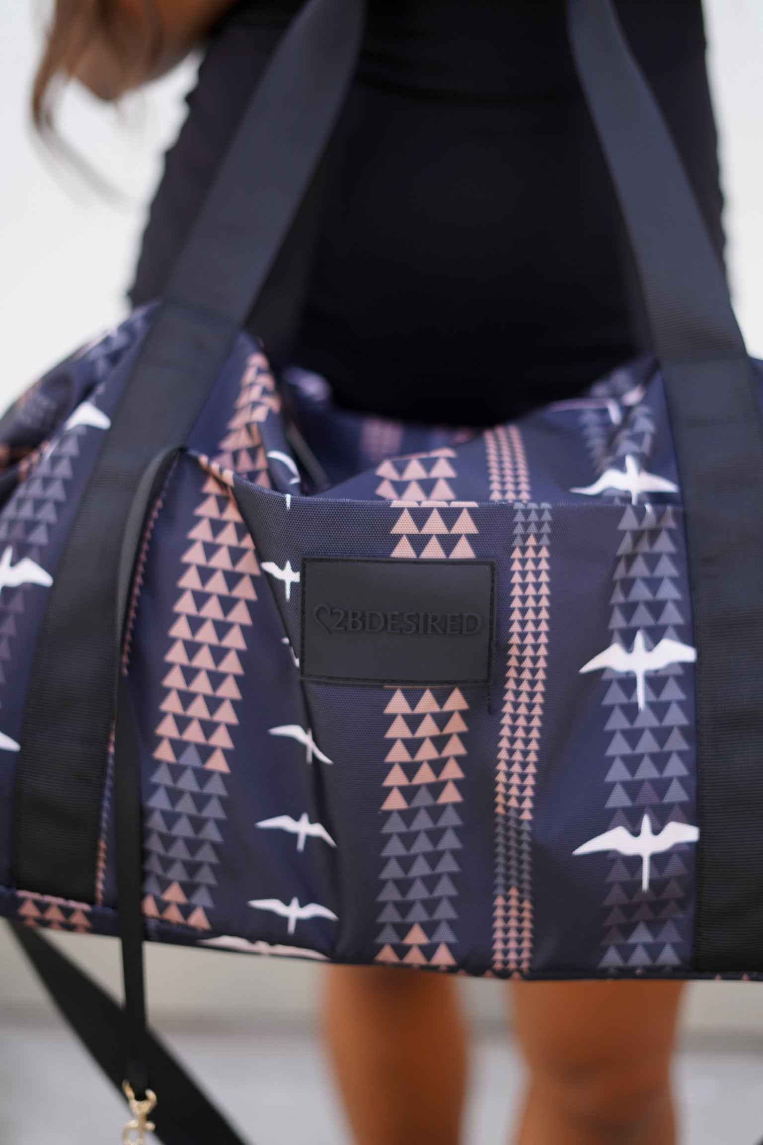 The Hana Duffle Bag is durable and spacious! Available in 5 prints: Opihi, Lōkahi Black, Puakenikeni Pikake Black, Orchid Cheetah Nude, and Mauka.