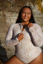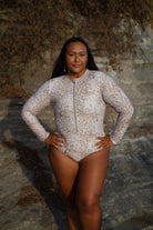 The Mehana Monokini is available in Orchid Cheetah Nude. This one piece is comfortable and offers lots of coverage!