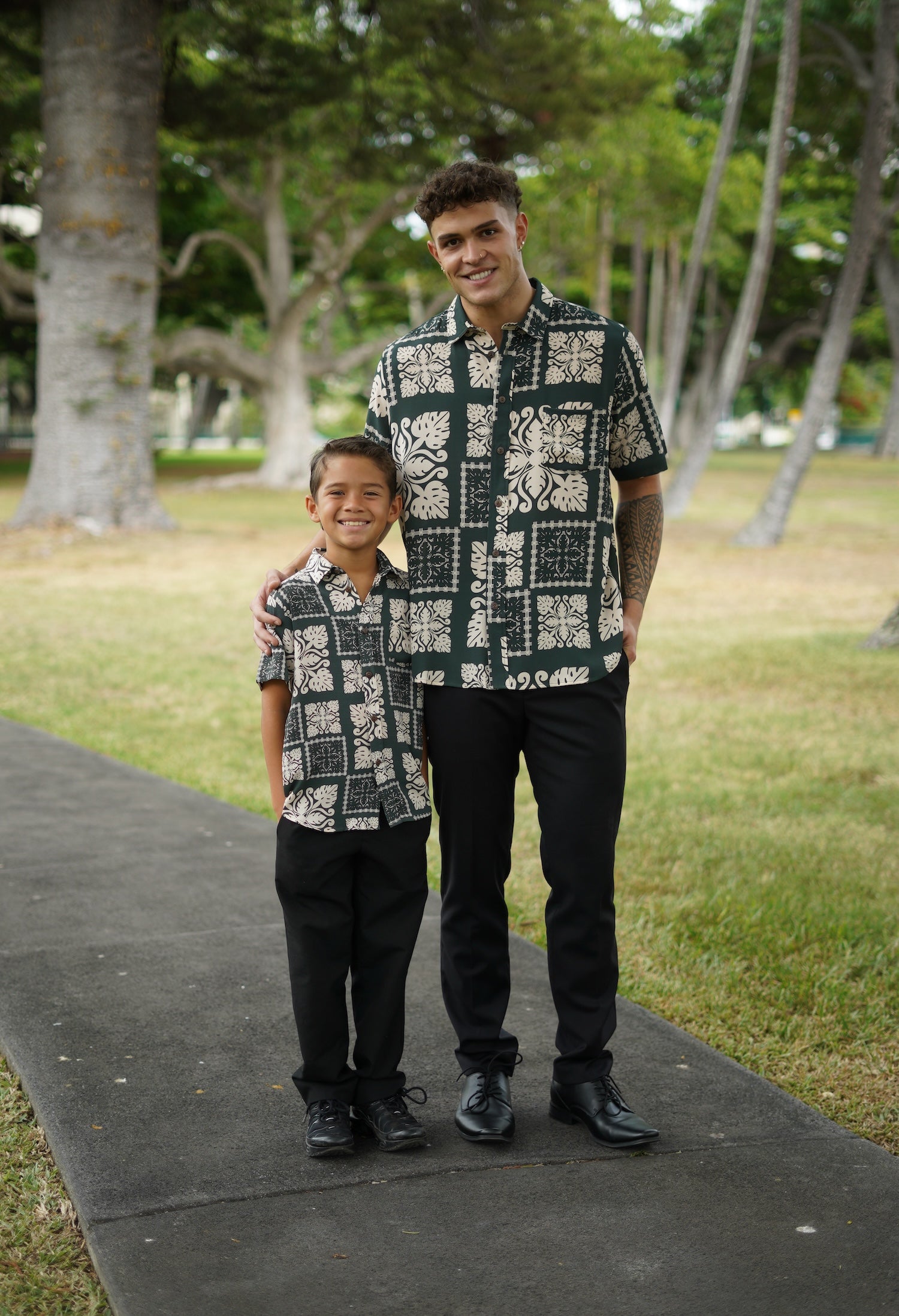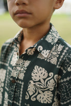 The Ahe Keiki Boy Aloha Shirt is part of our Country Quilt Emerald matching apparel collection!