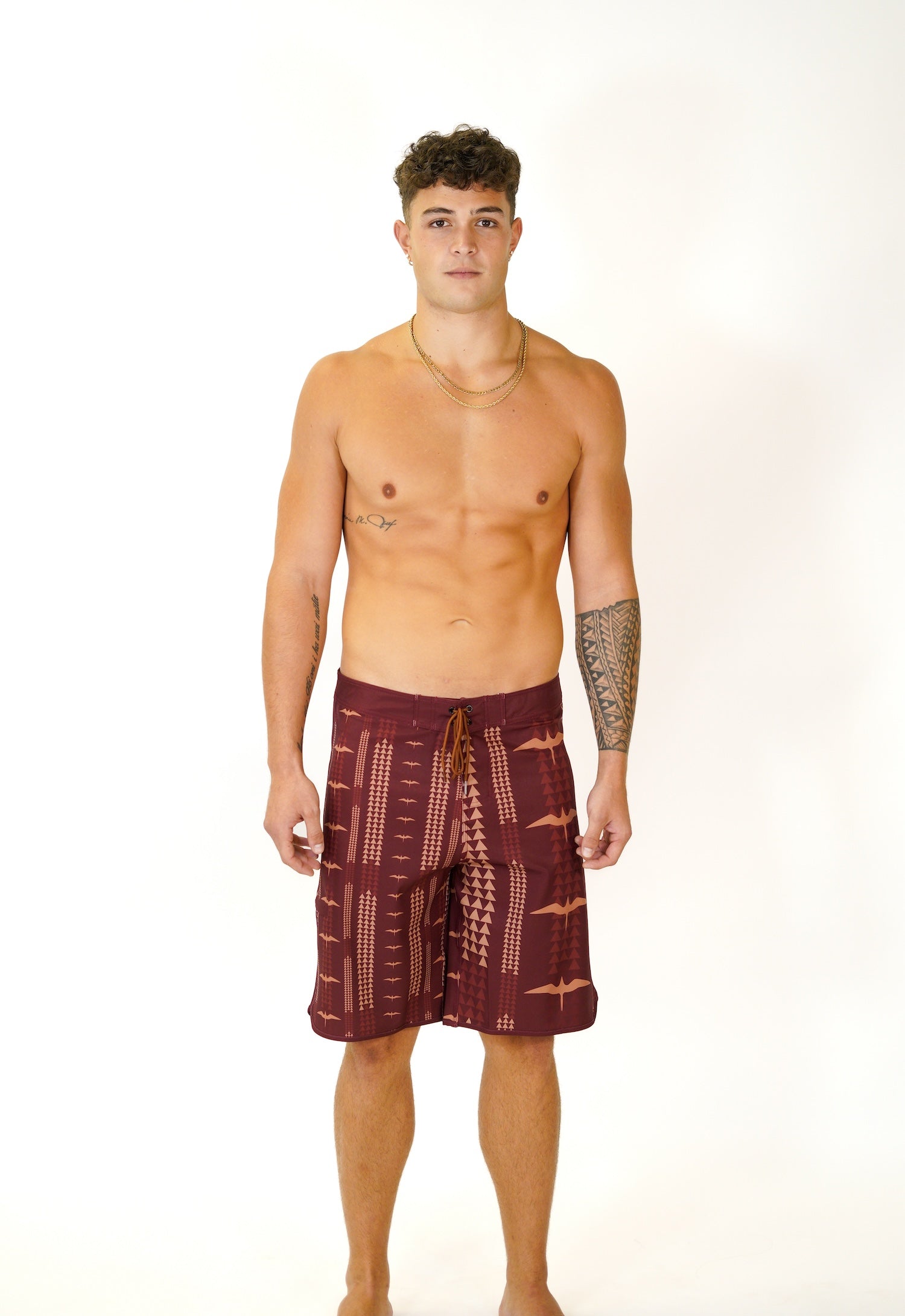 Our Kamekona Board Shorts are available in our newest Lōkahi Red print!