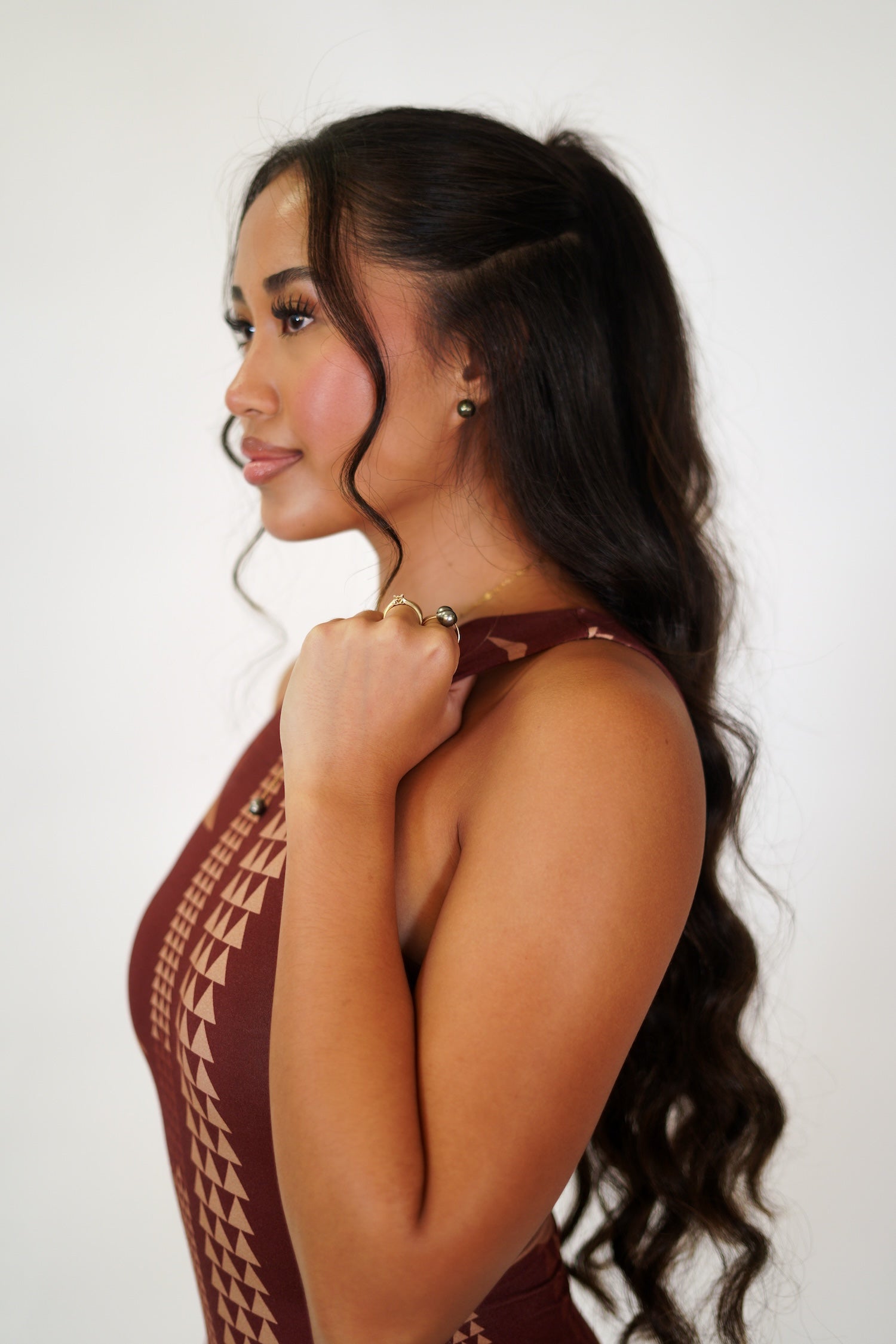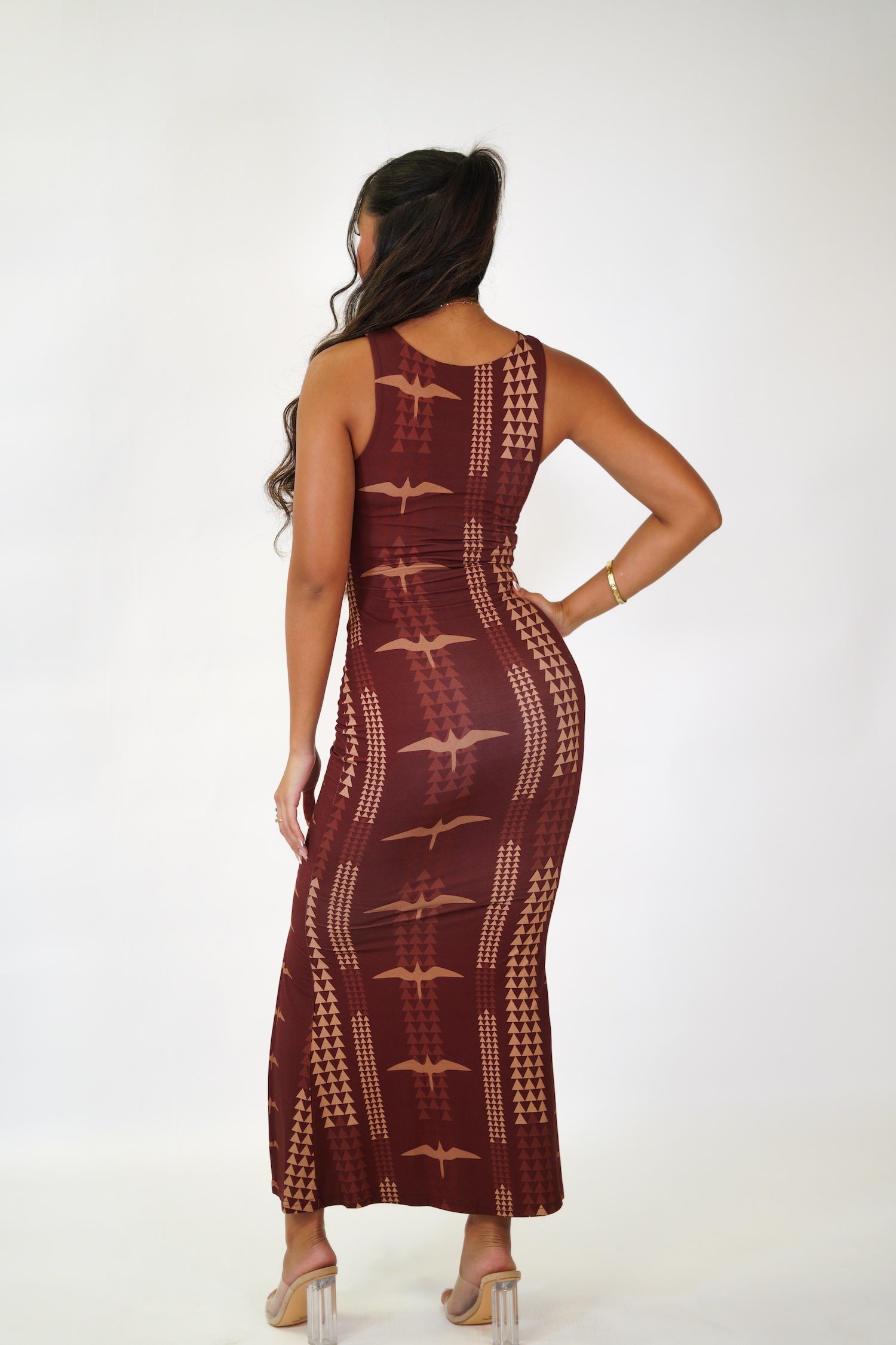 A stunning bodycon dress that keeps you snatched! Available in Lōkahi Red.