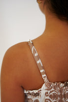 One piece jumpsuit with adjustable spaghetti straps, stretchy waistband, pockets, and tapered at ankle.Made of extra soft bamboo cotton.