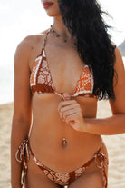 The Aria Top is perfect for tanning! Available in Country Quilt Rust. Pair with our Aria Bottom!
