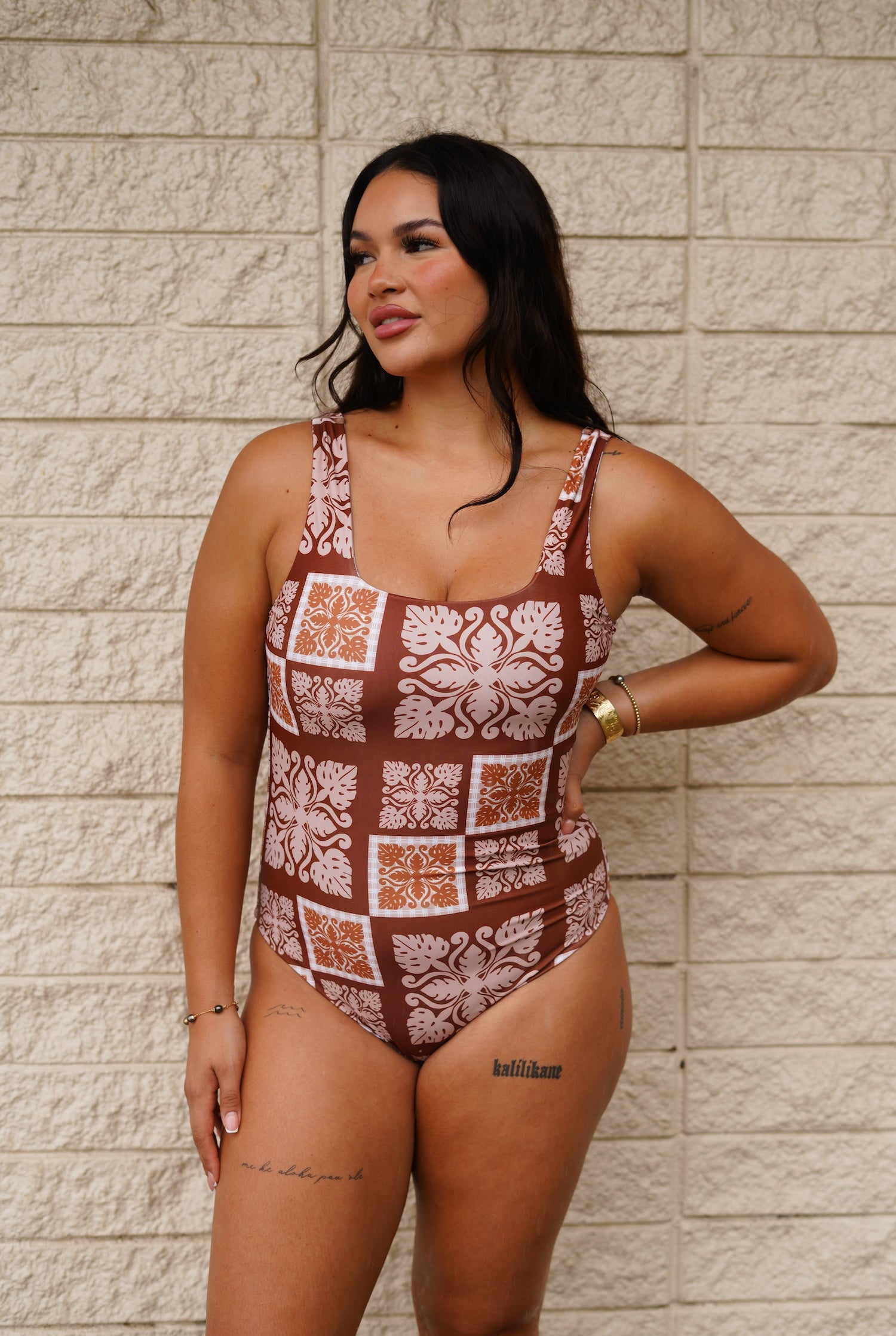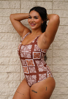 A classic, seamless, & reversible one piece--our original classic monokini reimagined! This monokini is buttery soft and keeps everything secure. Now available in reversible Country Quilt / Country Quilt Rust.