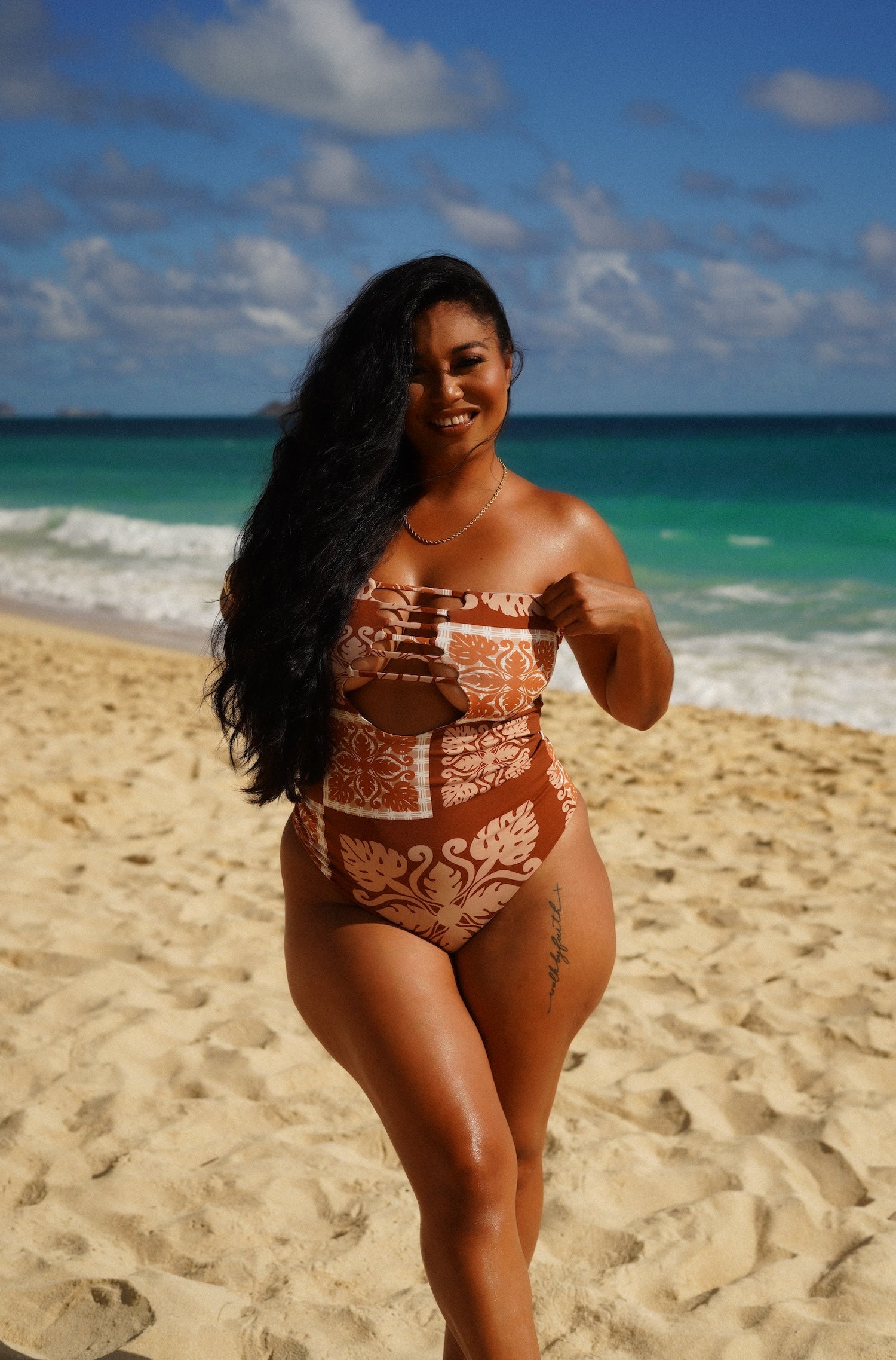 The Maya Monokini is inspired by our Kenya Top! Available in Country Quilt Rust.