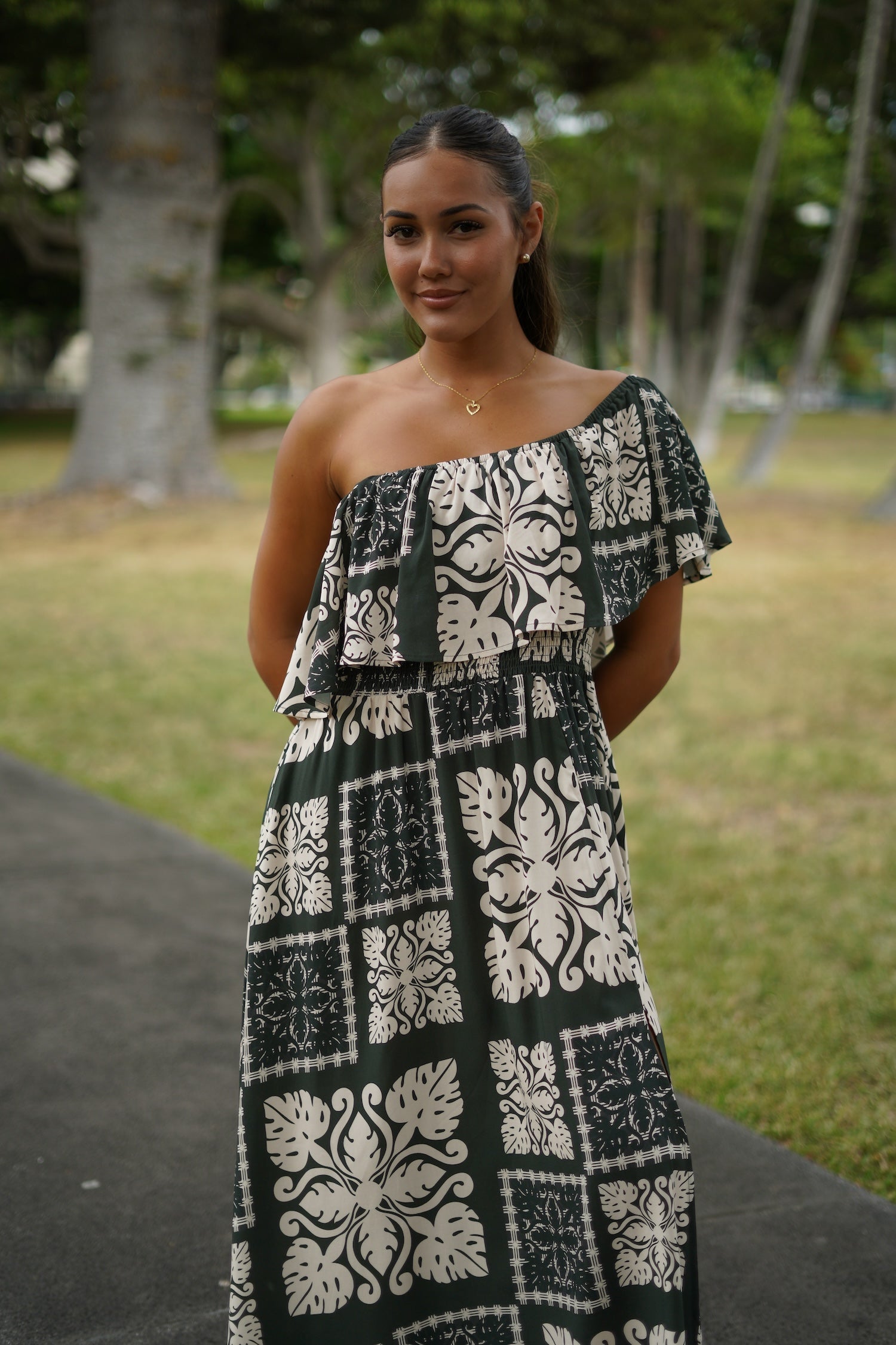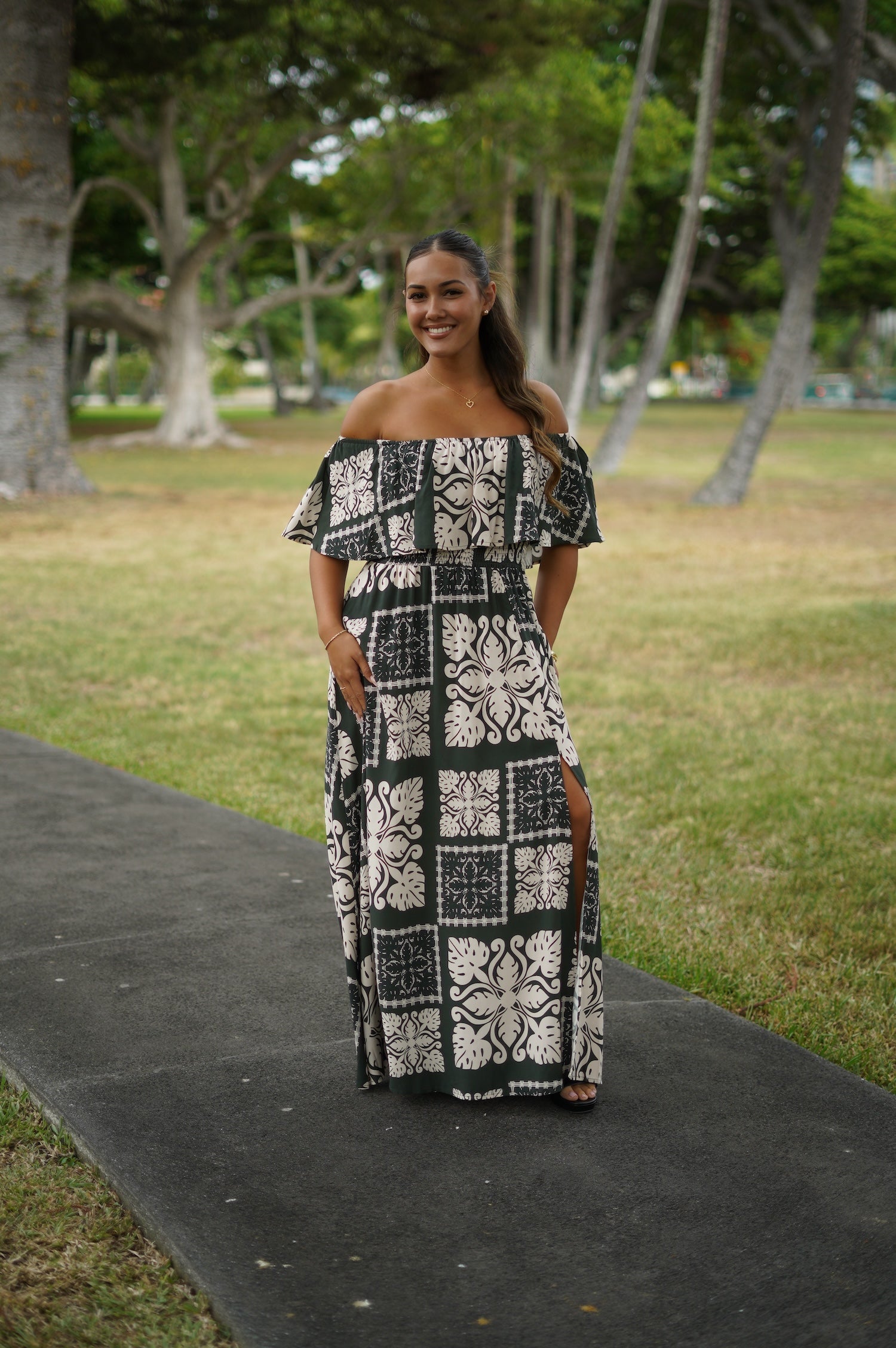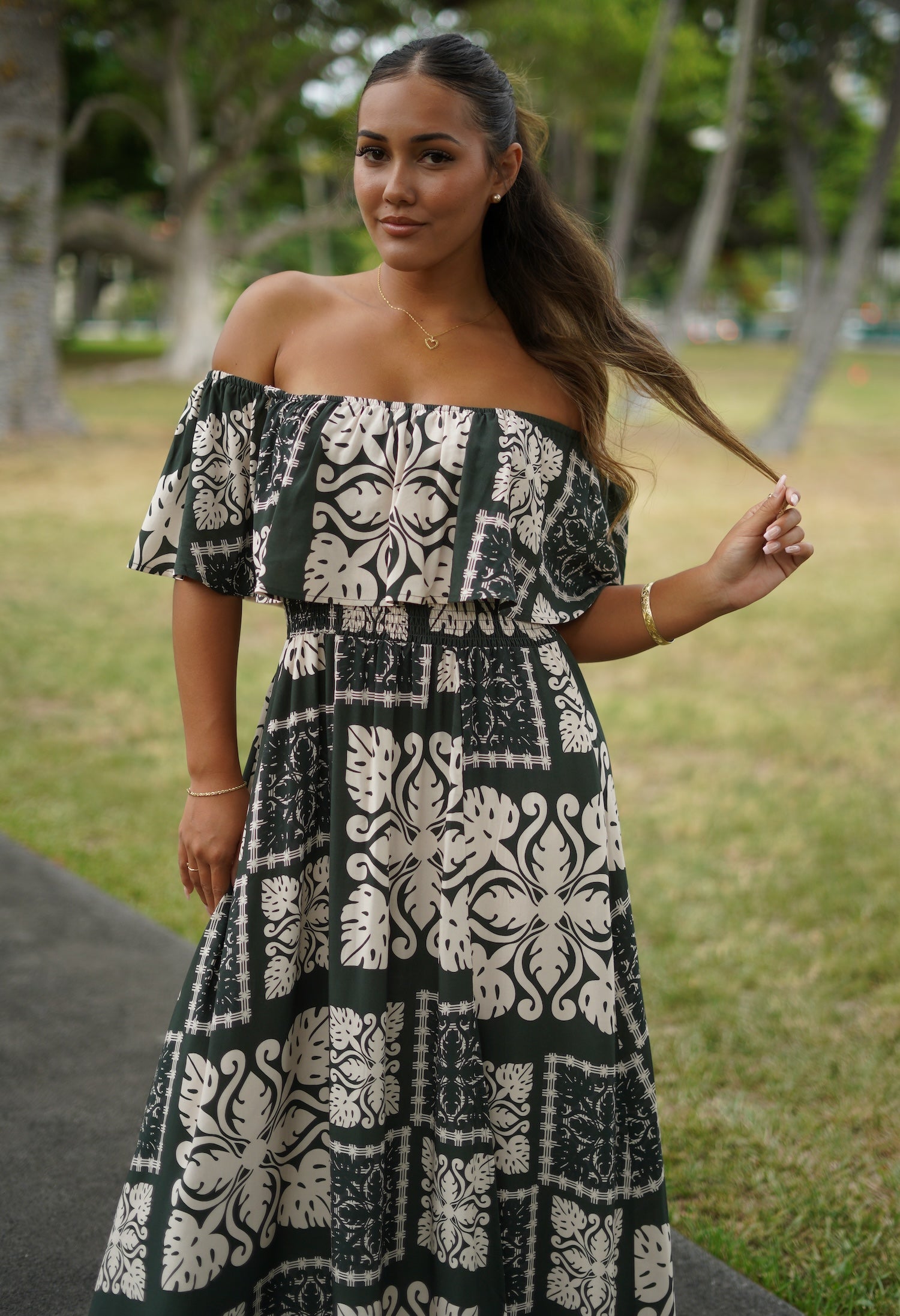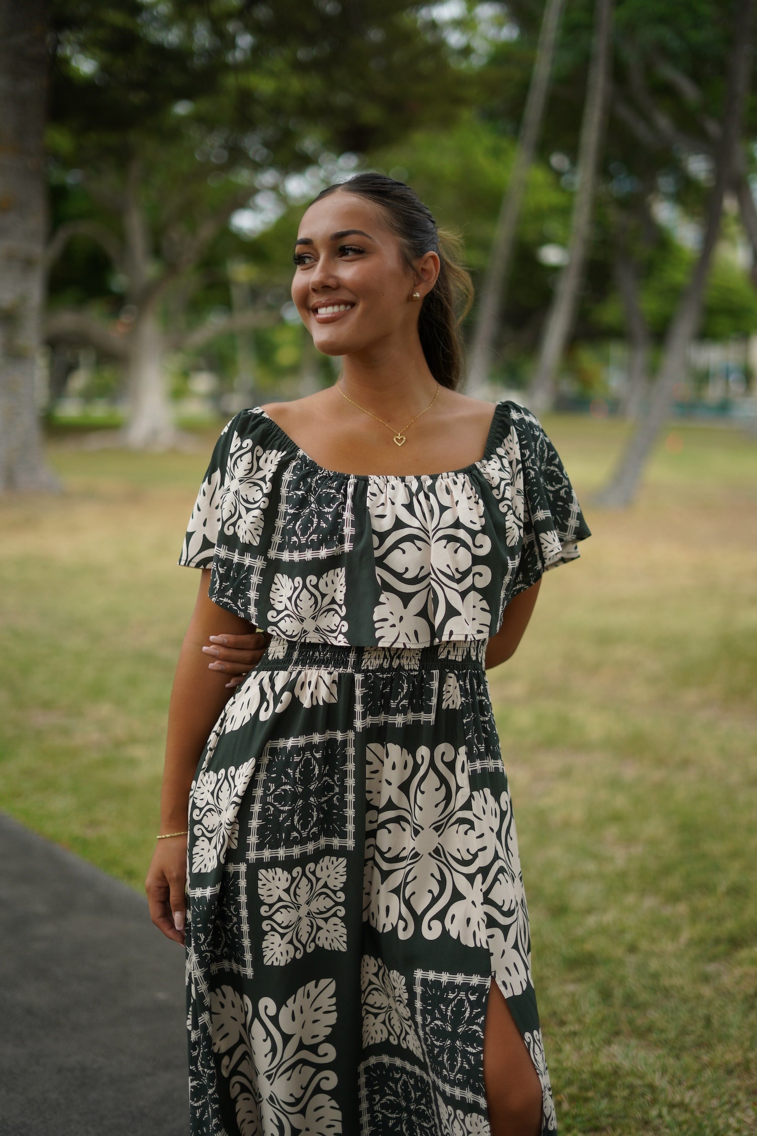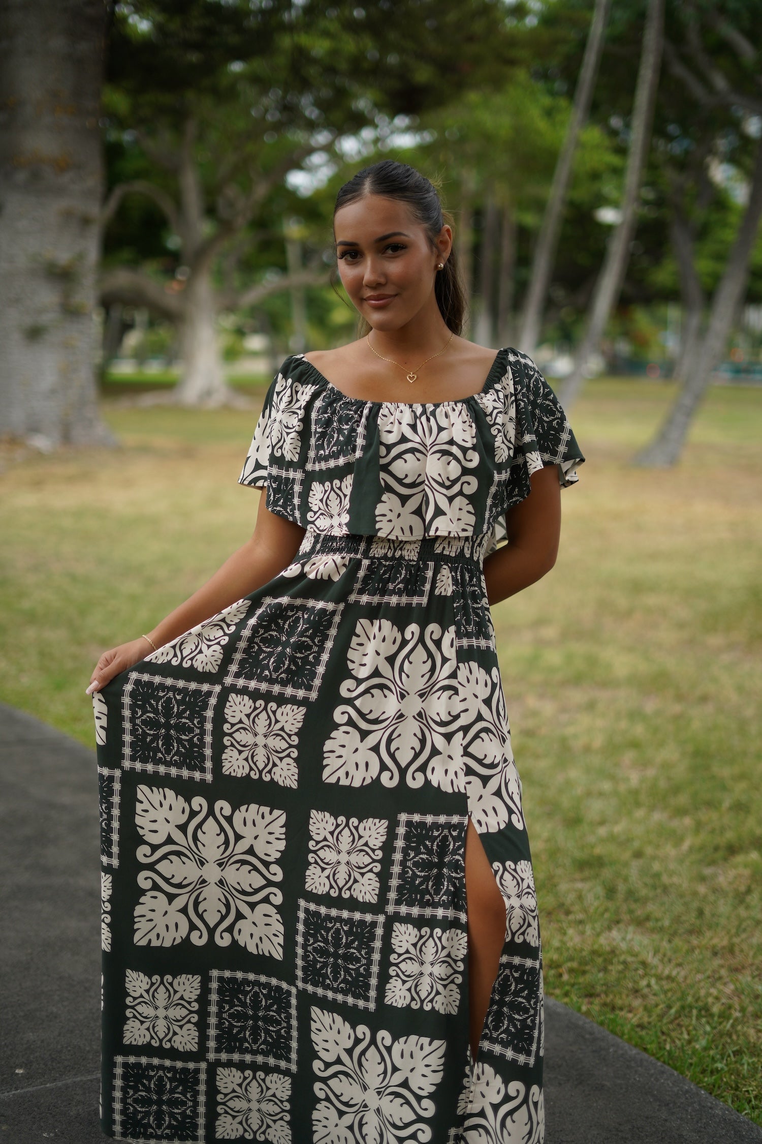 The Anela Maxi Dress is cute and comfortable! Available in Country Quilt Emerald.